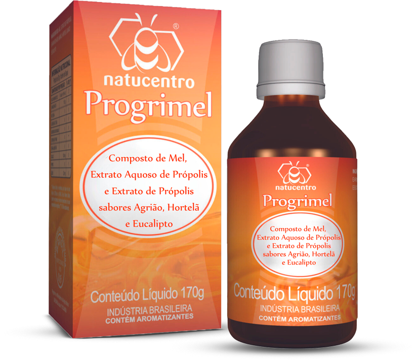 O Progrimel é um Composto de mel e Extratos de própolis, acrescido dos sabores dos poderosos agrião, hortelã e eucalipto.